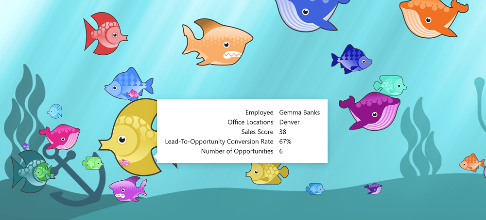 "I came across a fish tank and instantly I thought... ok, that's not a business report. What is this? This is kind of playful. This is not your typical pie charts, bar charts, circle charts. There are things moving on the screen that attracted your attention."